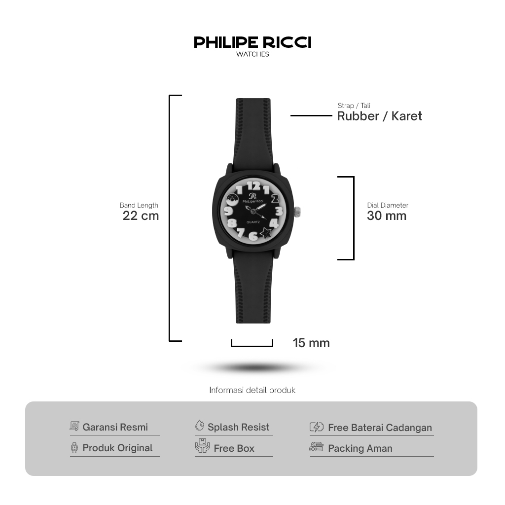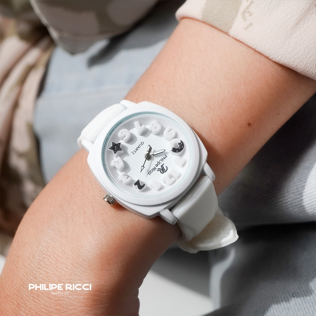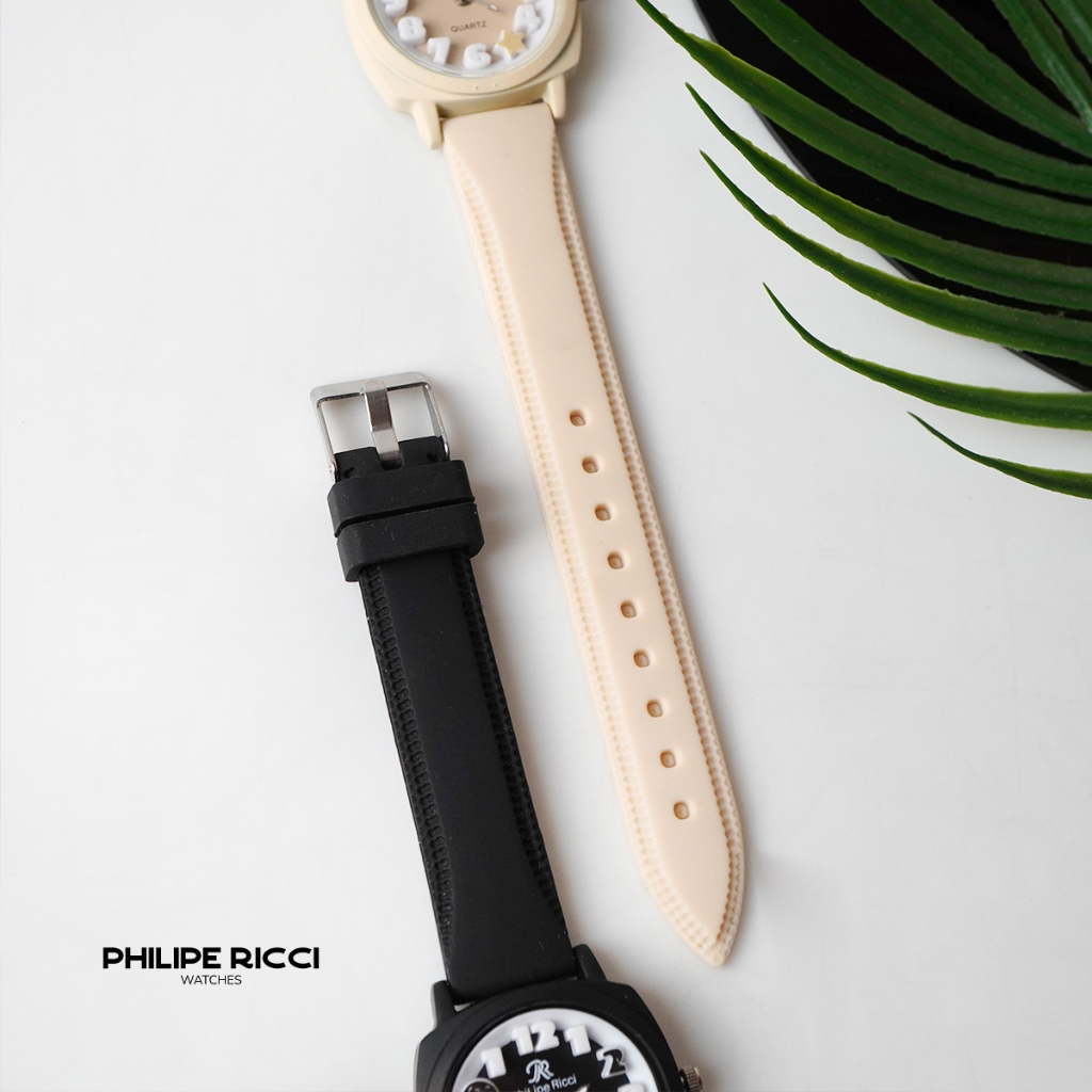 PhiLipe Ricci Jam Tangan Wanita Karet Kotak Kecil Stylish Ori Lucu 8526 Women Watches Free Baterai