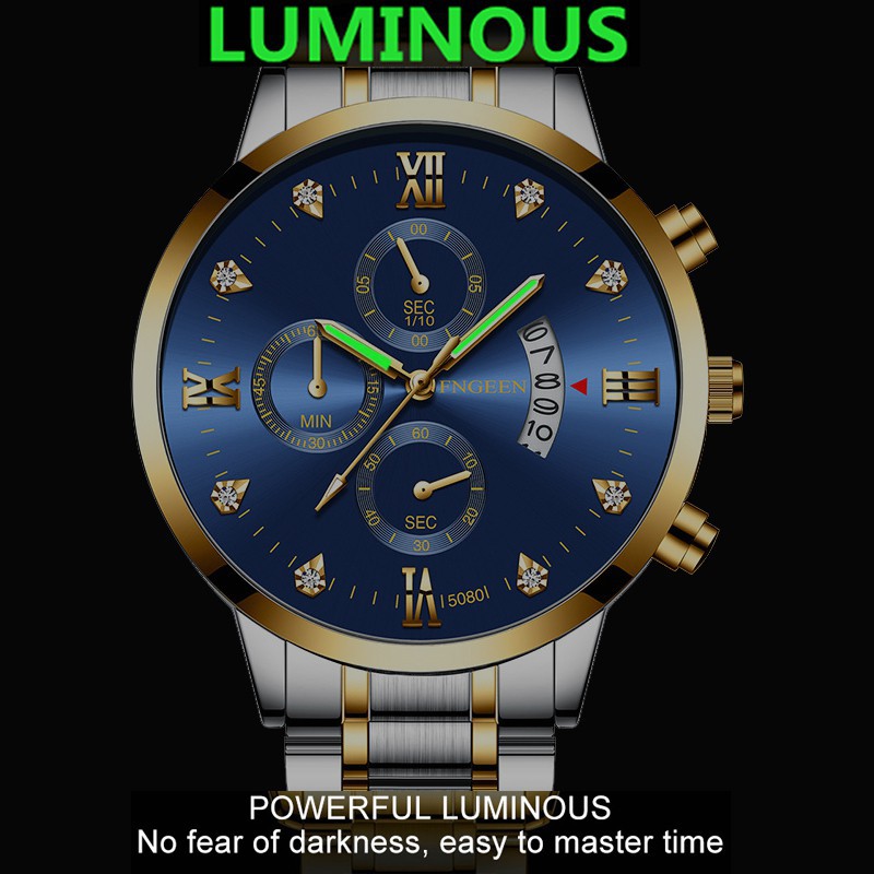 FNGEEN 5080 Jam Tangan Pria Luxury Stainless Steel Quartz Original Anti Air Watch + Kotak Gratis