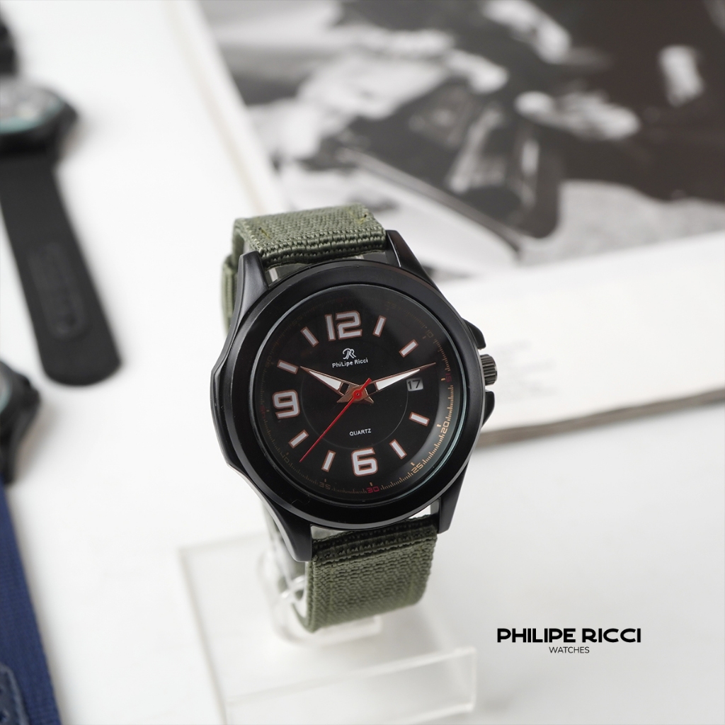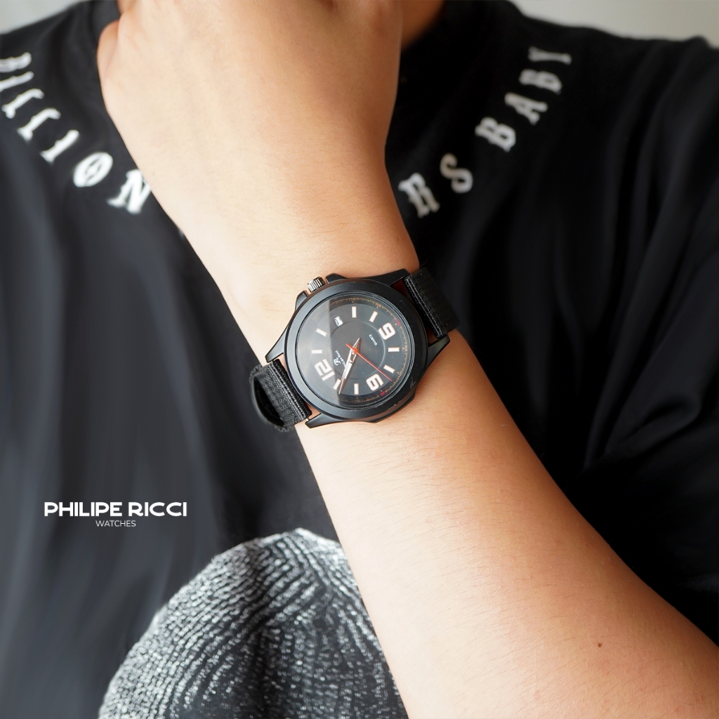 PhiLipe Ricci Jam Tangan Pria Kanvas Keren Hitam Original Minimalis 100 PERSEN Simple 7554 Free Baterai