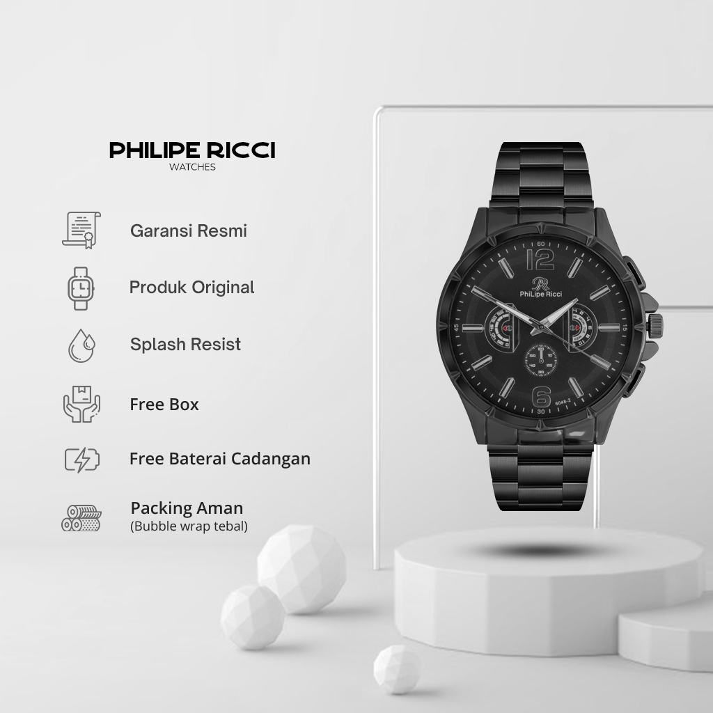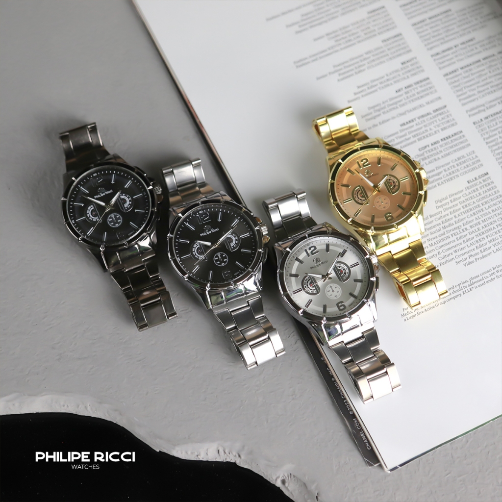 PhiLipe Ricci Jam Tangan Pria Rantai Analog Model Elegan Terbaru Kasual Modern 6048B Business Men Watches Free Box