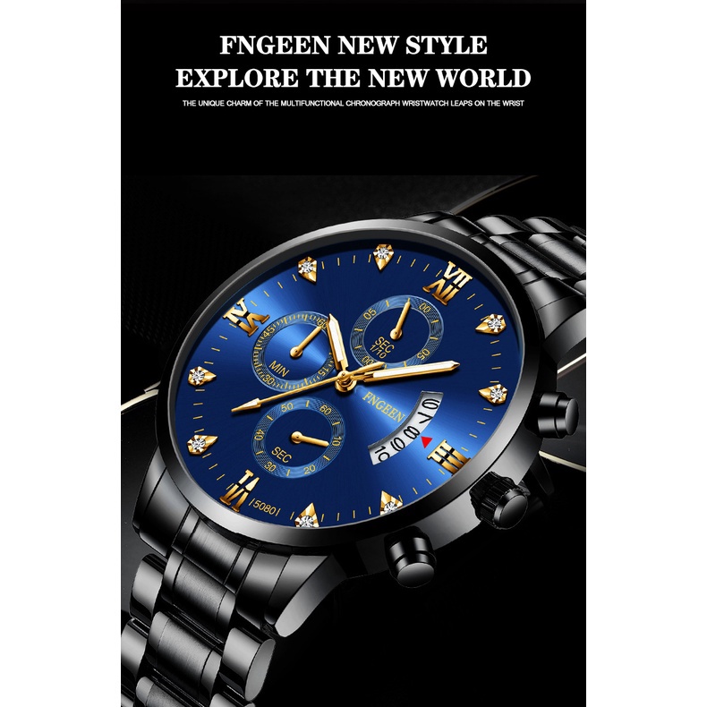 FNGEEN 5080 Jam Tangan Pria Luxury Stainless Steel Quartz Original Anti Air Watch + Kotak Gratis