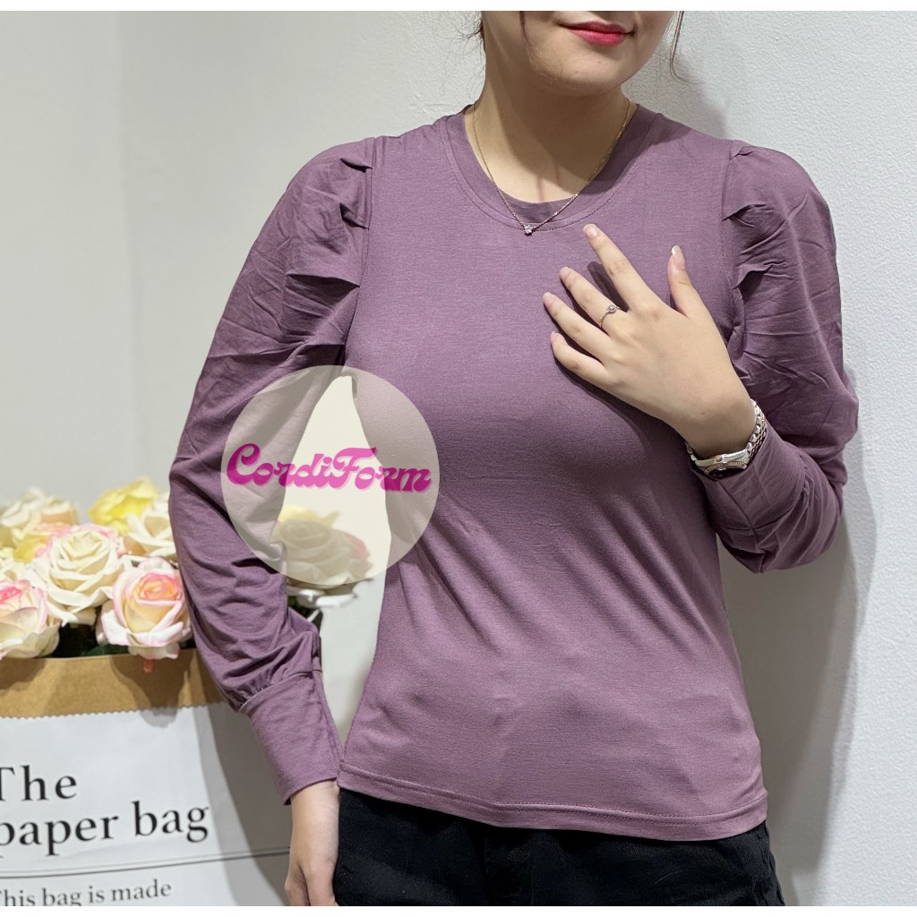 Puffy Shoulder Top / Kaos Lengan Panjang Balon Wanita #4672