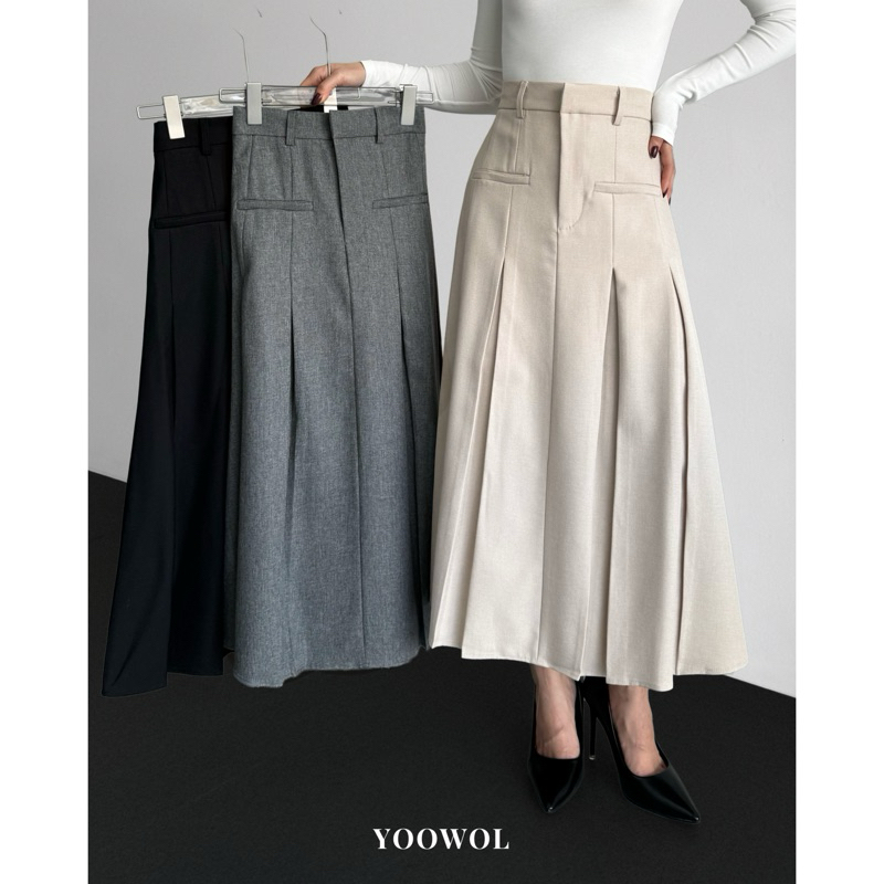 YOOWOL SANGUINE PLEATED SKIRT SEMIWOOL HIGHWAISTED