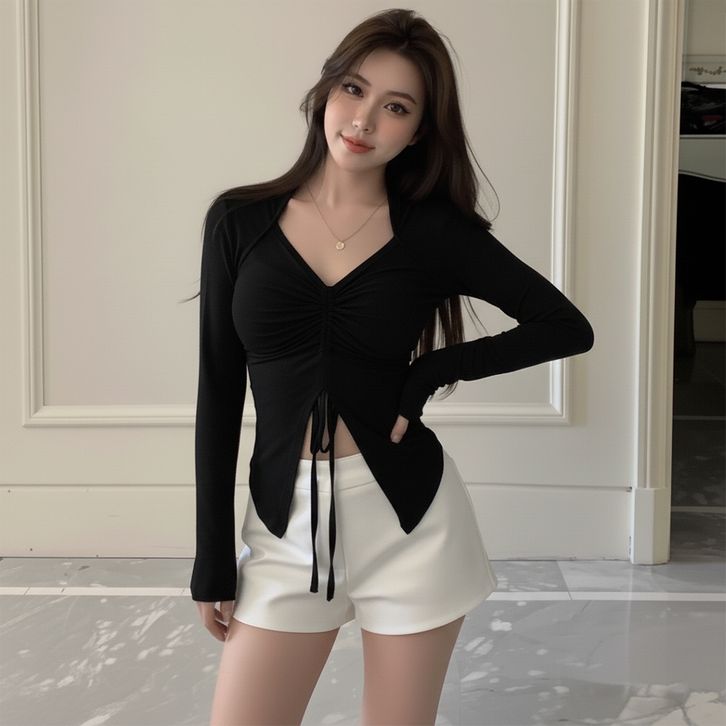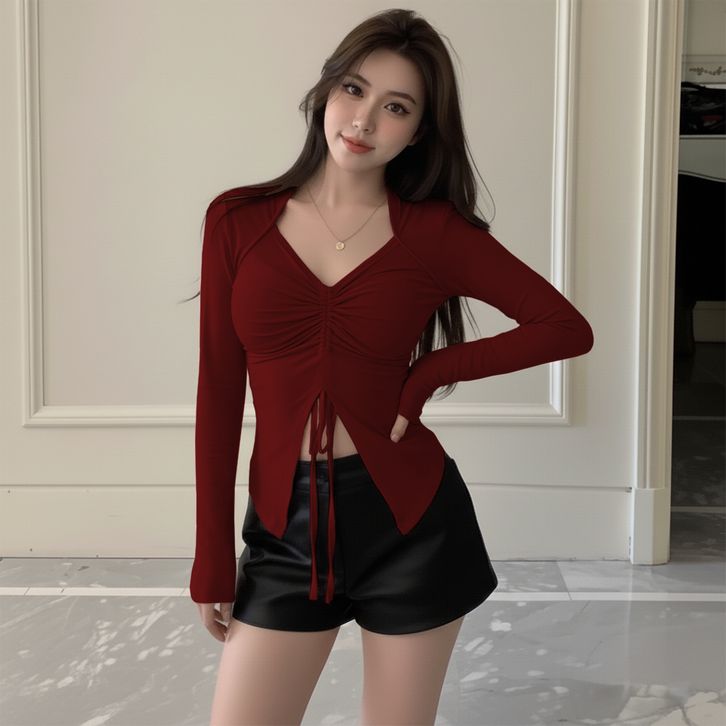 Atasan Wanita Lengan Panjang Kaos Wanita Tali Serut Tengah Long Sleeve Style Kekinian 918