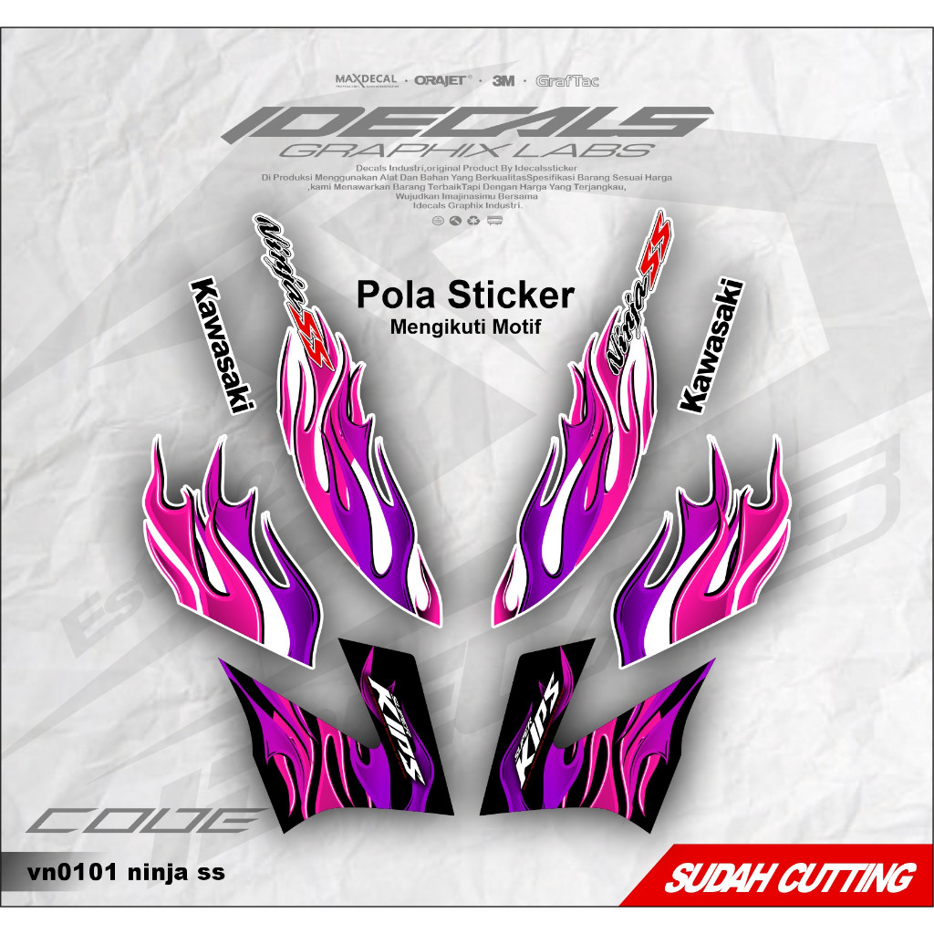 Sticker striping kawasaki ninja ss bahan vinyil,chrome dan hologram,motif api simpel bisa request warna dasar ( vn0101 )