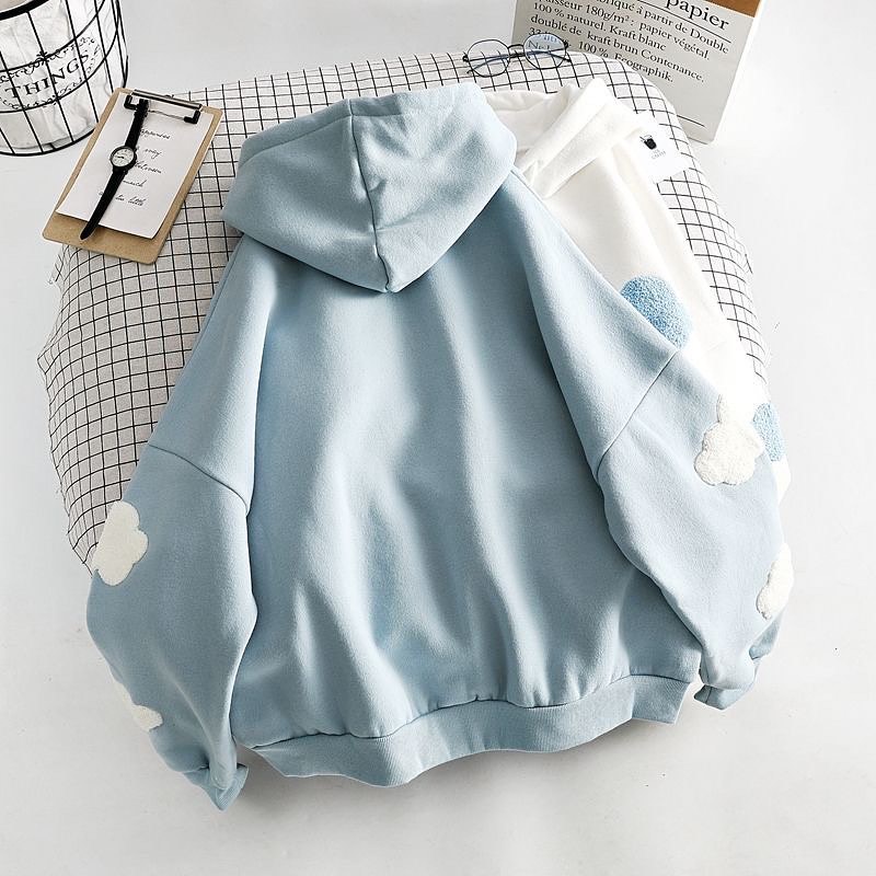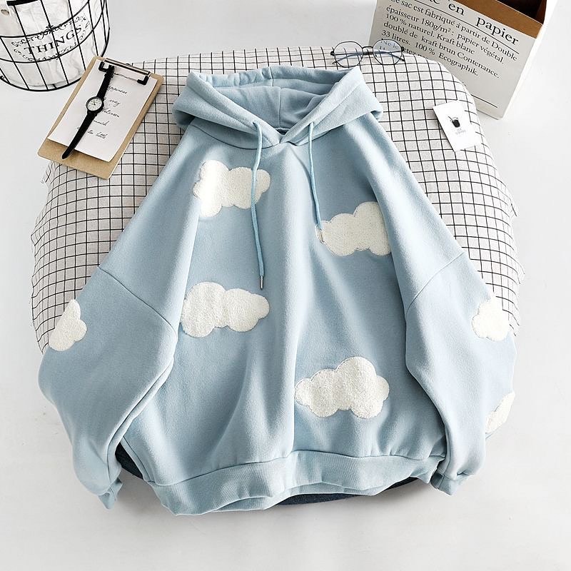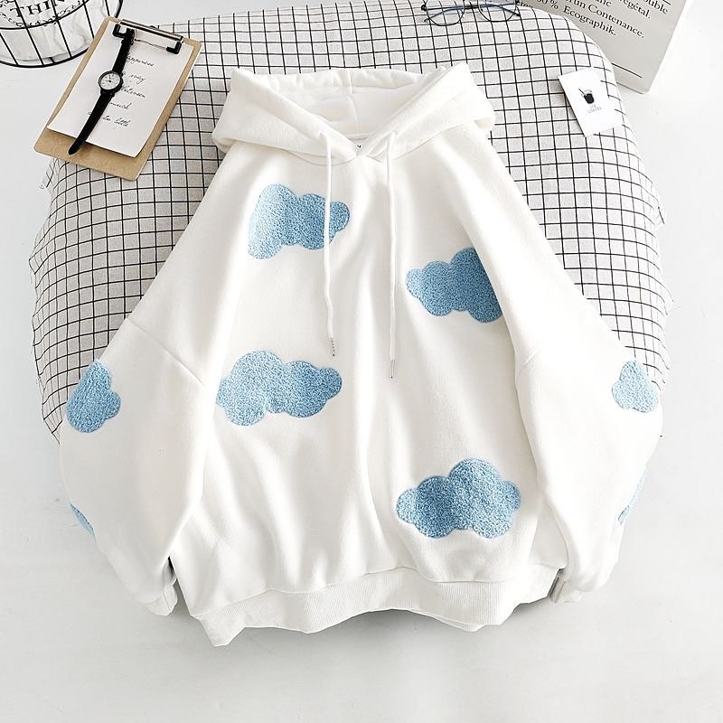 HodieSweater Wanita | CLOUD MOON SWEATER HOODIE OVERSIZE | Sweater Pull frint Bahan Fleece Tebal