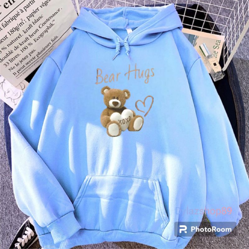 HodieCOD✅ Sweater Hoodie Atasan Wanita Atau Remaja Kekinian BEAR HUGS Size L-XL-XXL