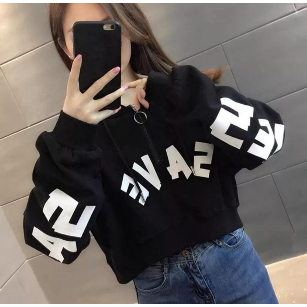HodieSAVE CROP HOODIE ZIPPER RING - Sweater crop wanita korean style Ootd - Sweatshirt Trendy