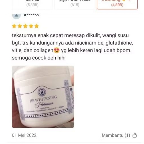 PUTEE hb whitening platinum / hbwhiteningbpom / pemutih badan / lotion / handbody / hb whitening