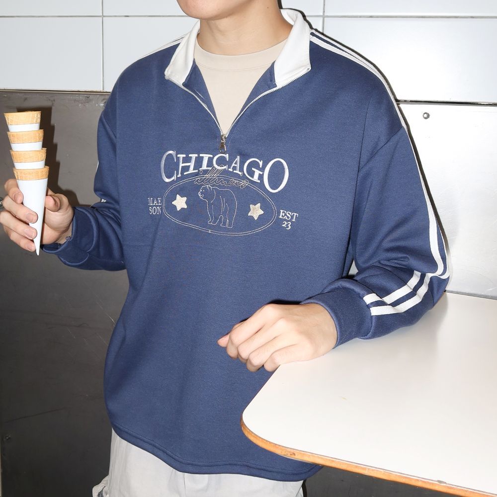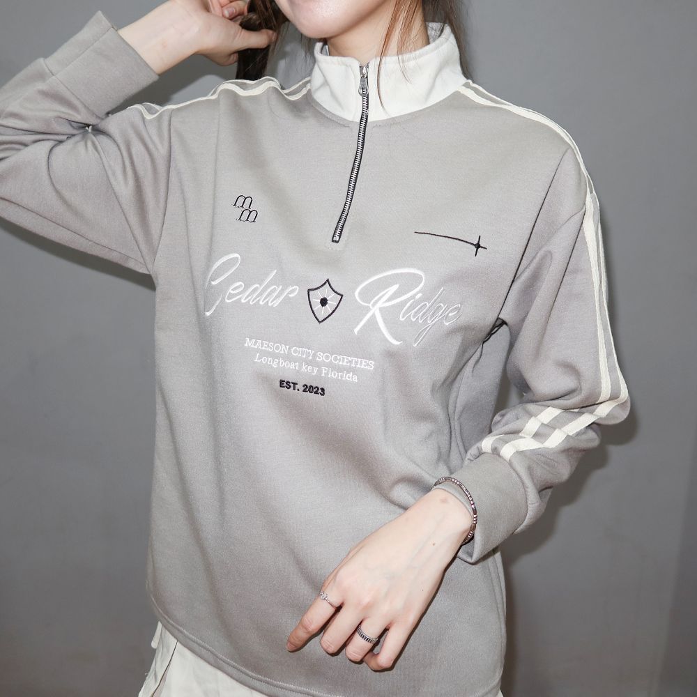 MAESON States Half Zip Turtleneck Graphic Embroidered Sweatshirt