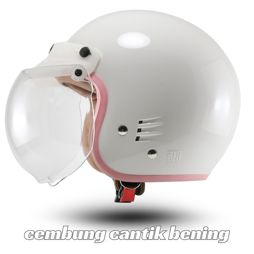 Helm Bipplast CEWEK Retro Bogo Solid LUMINOS Wanita Kekinian Kaca Datar SNI Motorcycle