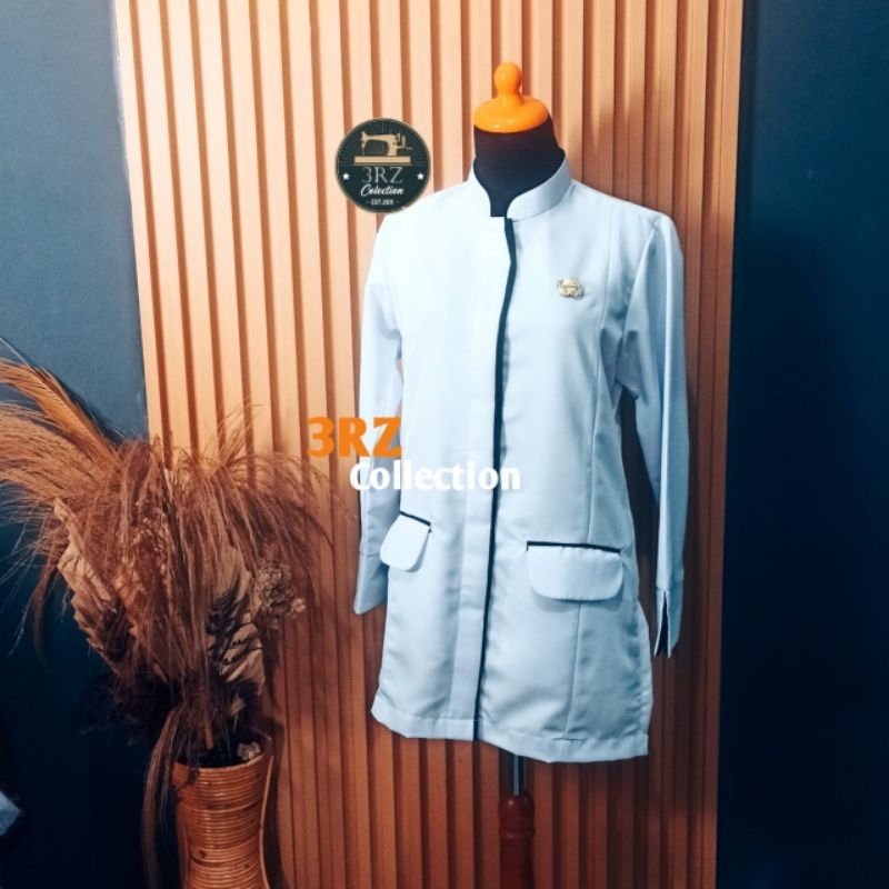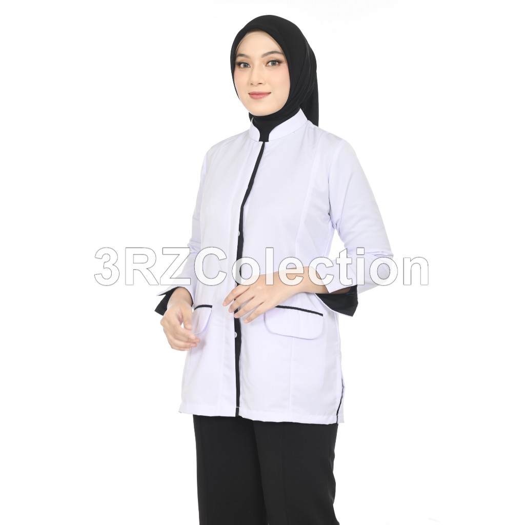 BAJU DINAS PUTIH LIST HITAM LEMBUT ATASAN PUTIH WANITA BAJU SERAGAM PUTIH DINAS CEWEK TERBARU