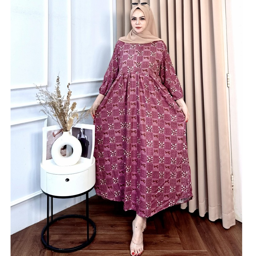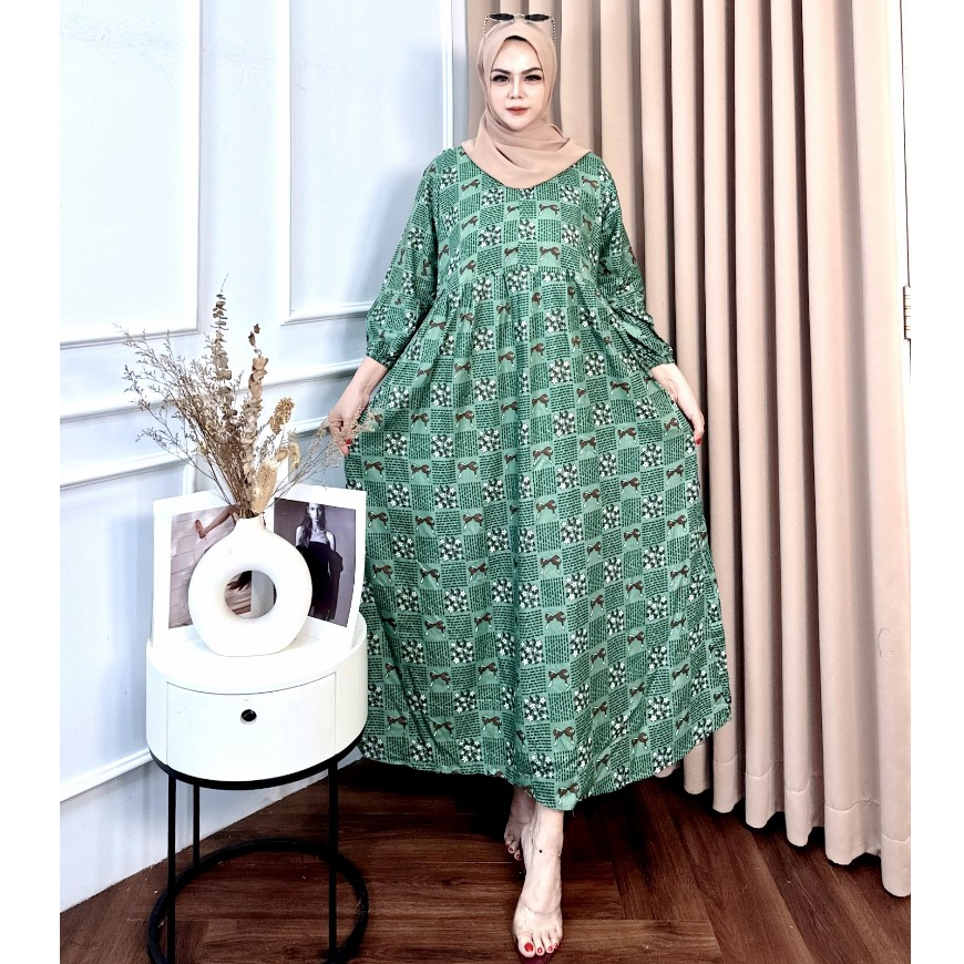 MIDI DRESS MOTIF BUNGA RAYON PREMIUM ADEM BUSUI FRIENDLY / DRESS ELEGAN LENGAN KARET SIZE M L XL XXL XXXL TERBARU
