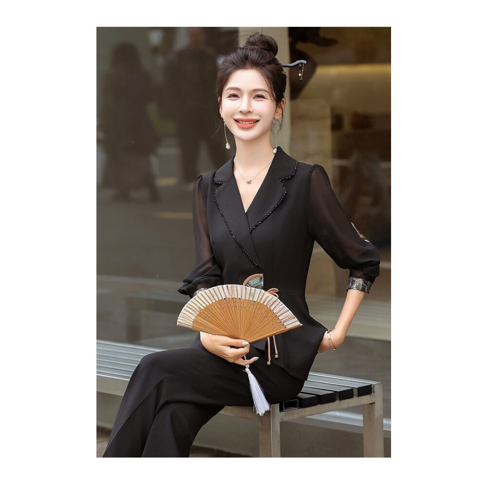 FADFAD ready stock Setelan Dua Potong | Atasan Lengan Panjang | Celana Kaki Lebar | Gaya Nasional | Wanita Modis | Bahan