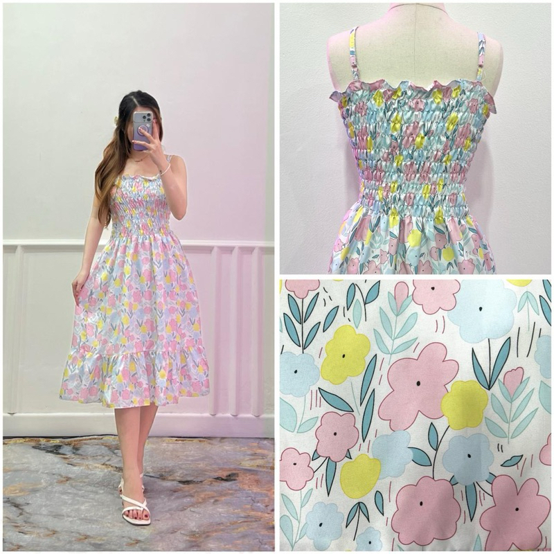 BABYDOLL DRESS TALI WANITA / DRESS TANKTOP / DRESS SMOCKED FULL