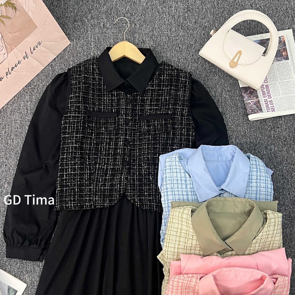 GDTIMA Setelan Wanita Kekinian Rompi Lengang Panjang Elegant Dress Baju Lebaran 2025