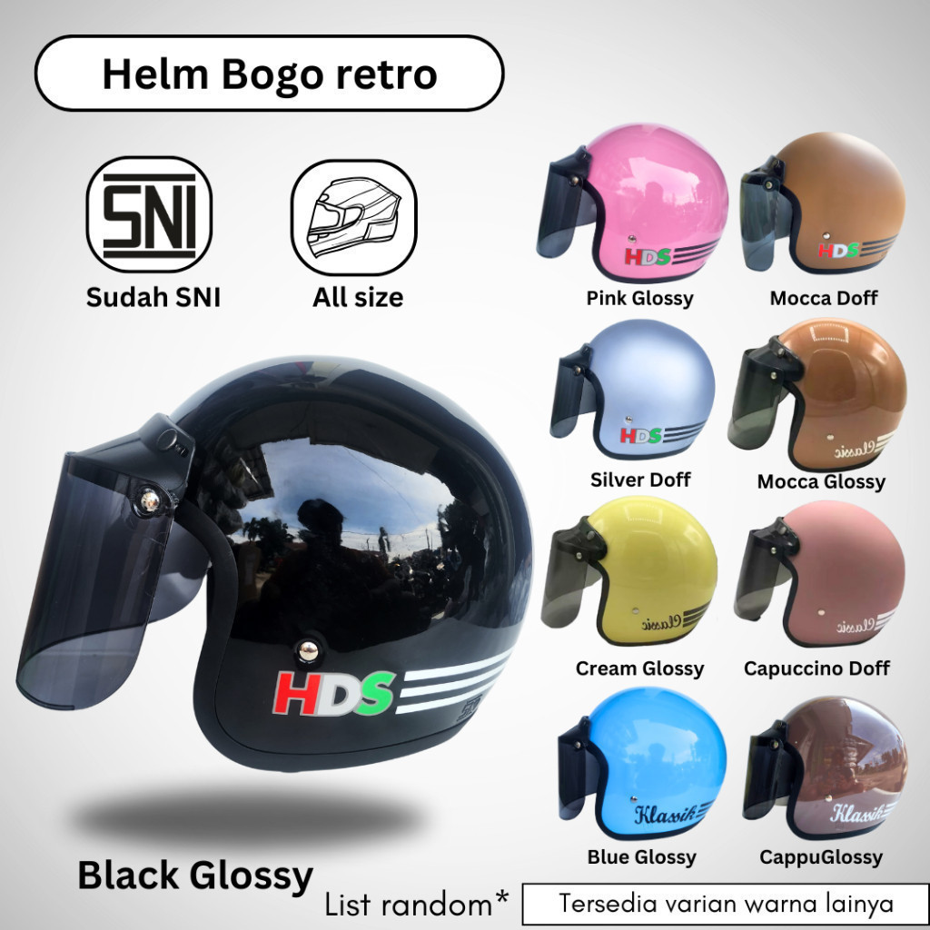 Helm Bogo Dewasa Klasik SNI HDS Helmet Polos Half Face Retro Classic Pria Wanita Hijab