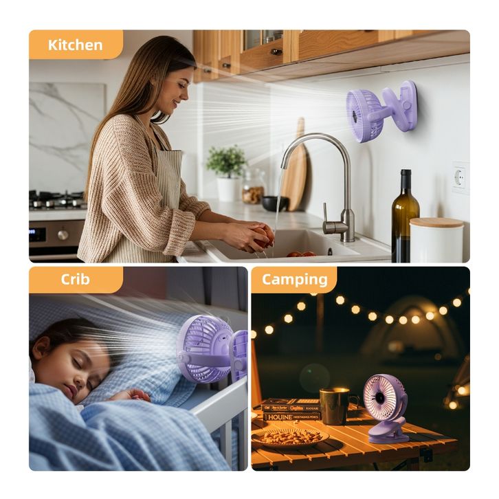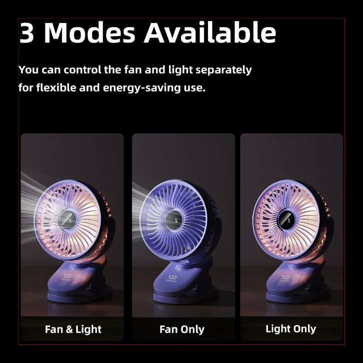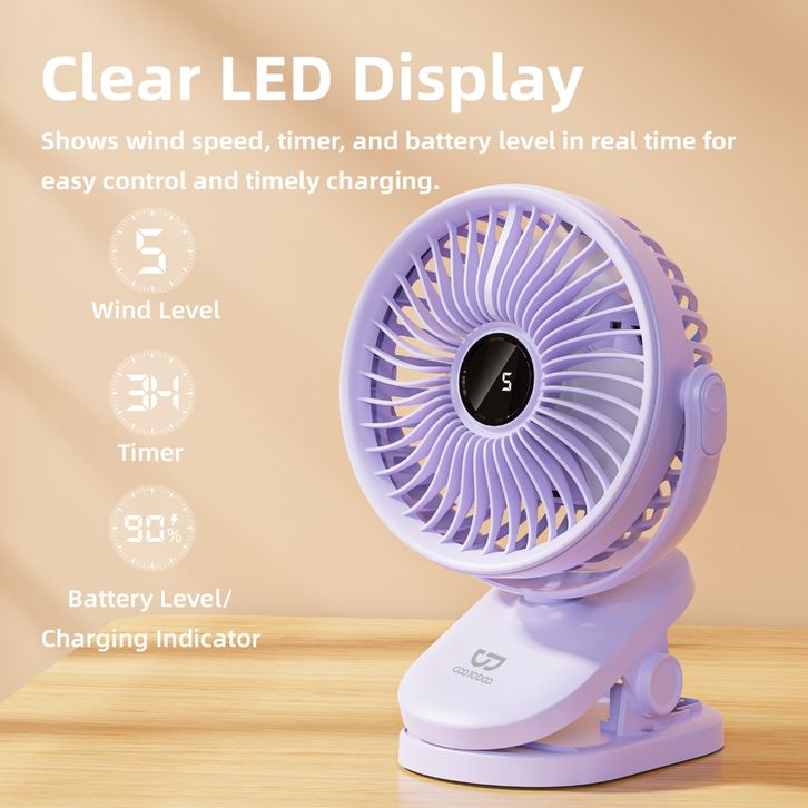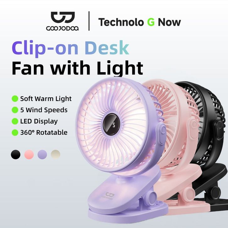 Kipas Angin Meja Goojodoq 5000mAh USB Clip Dengan Lampu Malam Portable Pan LED Display