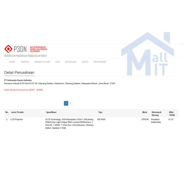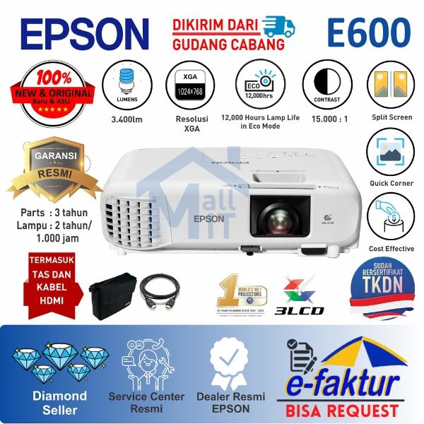 DP 0 PROYEKTOR EPSON EBE600 EBE600 EB E600 XGA 3LCD 3400 LUMENS TKDN PENGGANTI EBE500 E500 RESMI
