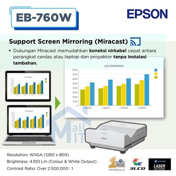 DP 0 PROYEKTOR EPSON LASER EB760W EB760W WXGA ULTRA SHORT THROW GANTI 725W