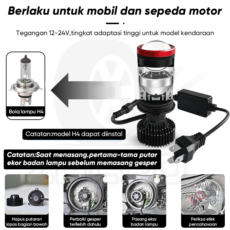 ZACRO Y7D Lampu Led Mobil Dan Motor H4 Mini PJECTOR PROJIE SUPER BRIGHT 50 Watt/Dengan kipas angin