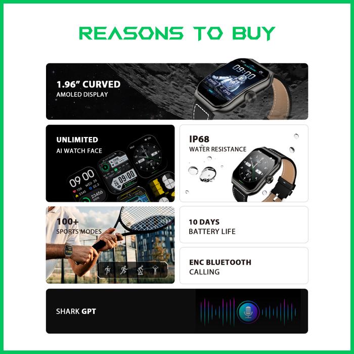 Black Shark Smartwatch GT3 Amoled Display 100+ Sport Mode 10 Days Battery Life AI Watch Face 1 Year
