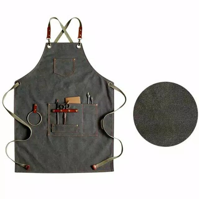 Apron Multifungsi Bartender Canvas Leather Celemek Barista Pria Wanita Dewasa