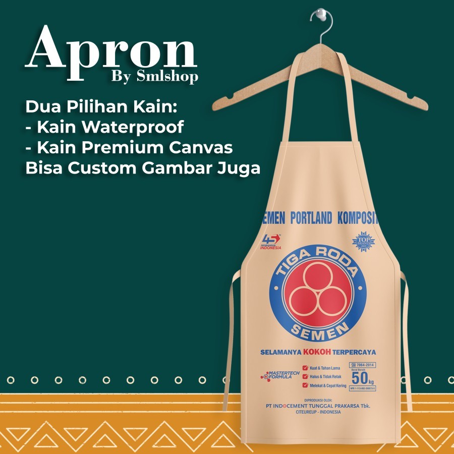 Apron Celemek Barista Waterproof Anti Air Motif Karung Semen Tiga Roda