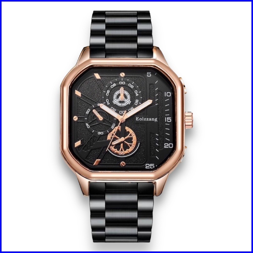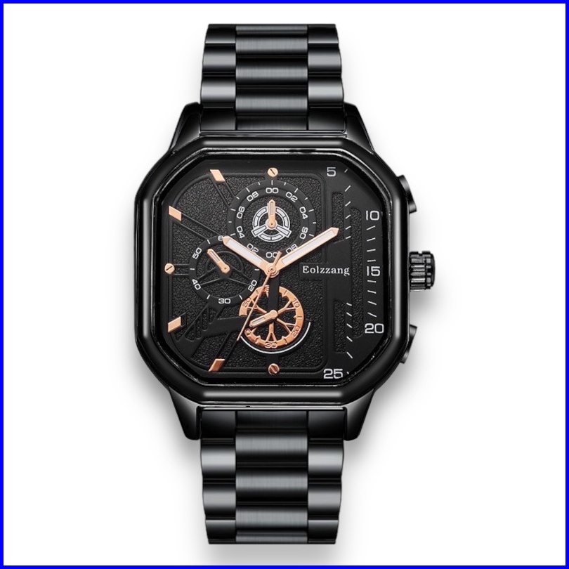 Jam Tangan Pria Sport Rantai Segi Quartz Analog Chrono Casual Watch Fashion S1307