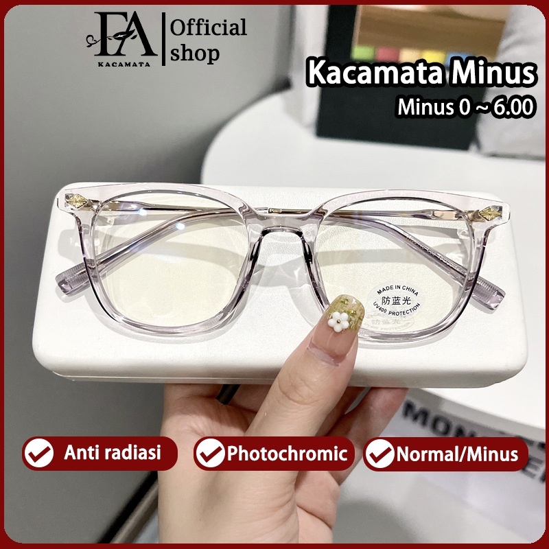 FOMAMATA Kacamata Minus Photocromic Wanita Anti Radiasi Blueray Bluechromic UV400 Frame Fashion Astigmatism 2 in 1