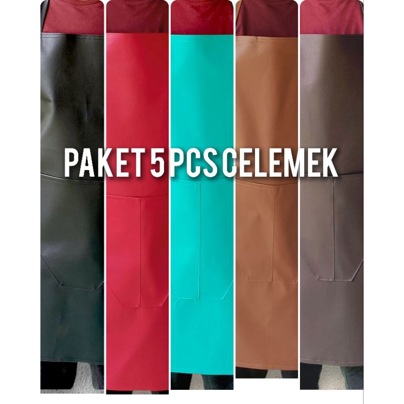 [] Paket Hemat 5 Celemek Masak Apron Anti Air dan Anti Minyak Bahan Oscar Kulit Sintetis