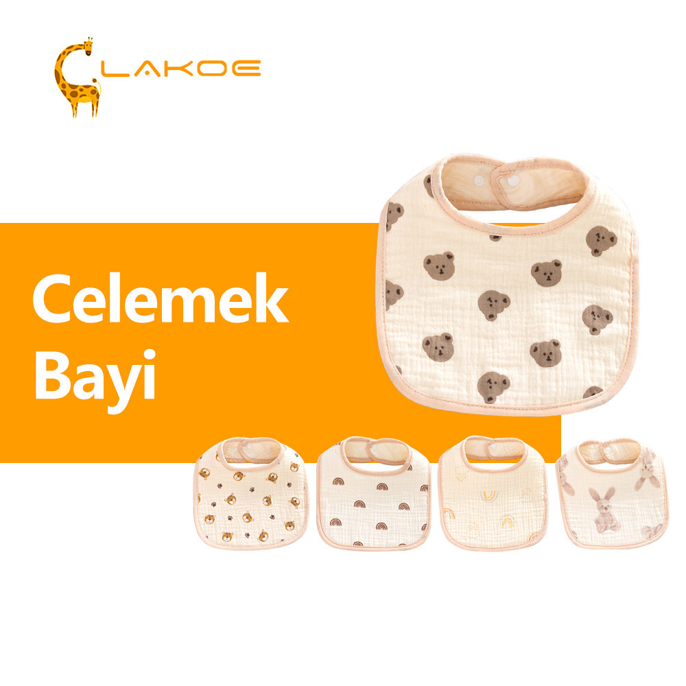 LAKOEOFFICIALMALL Celemek Air Liur Bayi Slaber Makan Bayi Bear kartun Bib Bayi Bentuk U