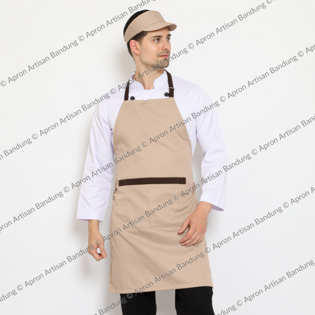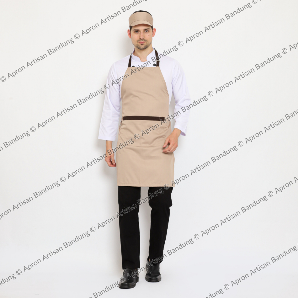 Paket Pakaian Masak Topi Chef Caddy dan Apron Celemek Full 3 Saku Bahan American Drill Original and Premium Quality
