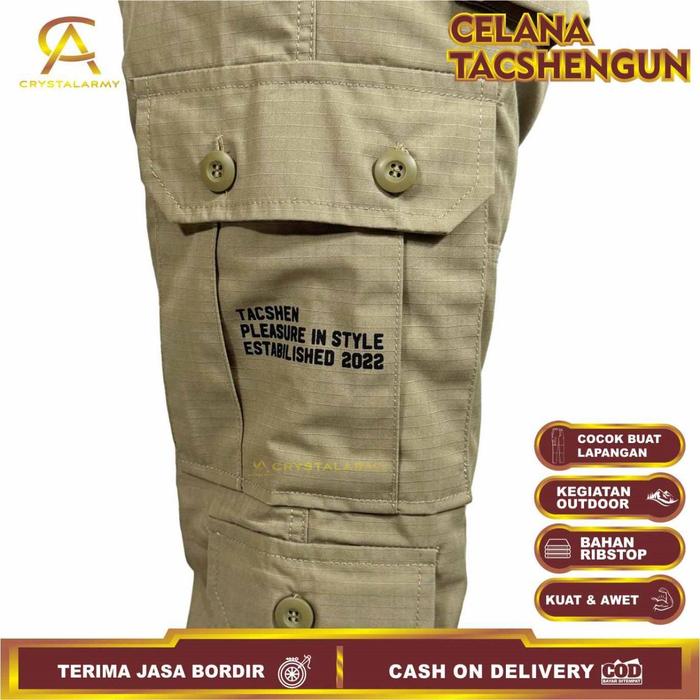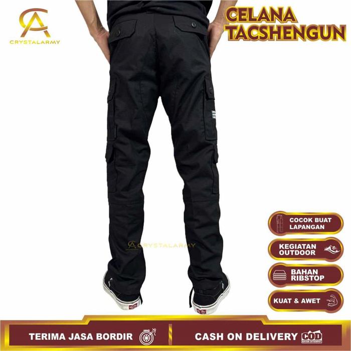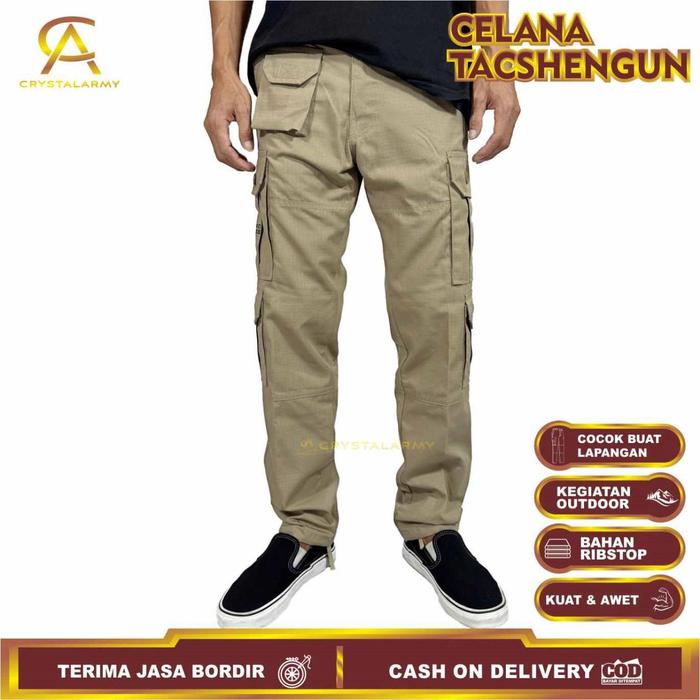 DP 0 CELANA CARGO PANJANG TACSHENGUN ARMY NYAMAN HITAM PRIA SLIMFIT CREAM 28