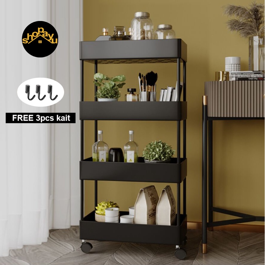 Rak troli square plastik rak toilet rak kamar mandi rak dapur serbaguna rak susun portable roda