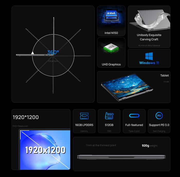 CHUWI MINIBOOK X 2025 GEN13 INTEL TWINLAKE N150 16GB LPDDR5 512GB NVME FHD WINDOWS 11