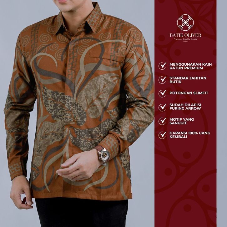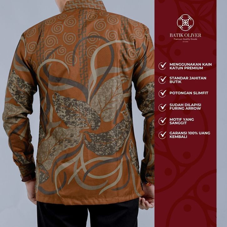 BATIK OLIVER Baju Batik Pria Dewasa Modern Motif GANDARUPA Lengan Panjang Slim Fit Premium Terbaru