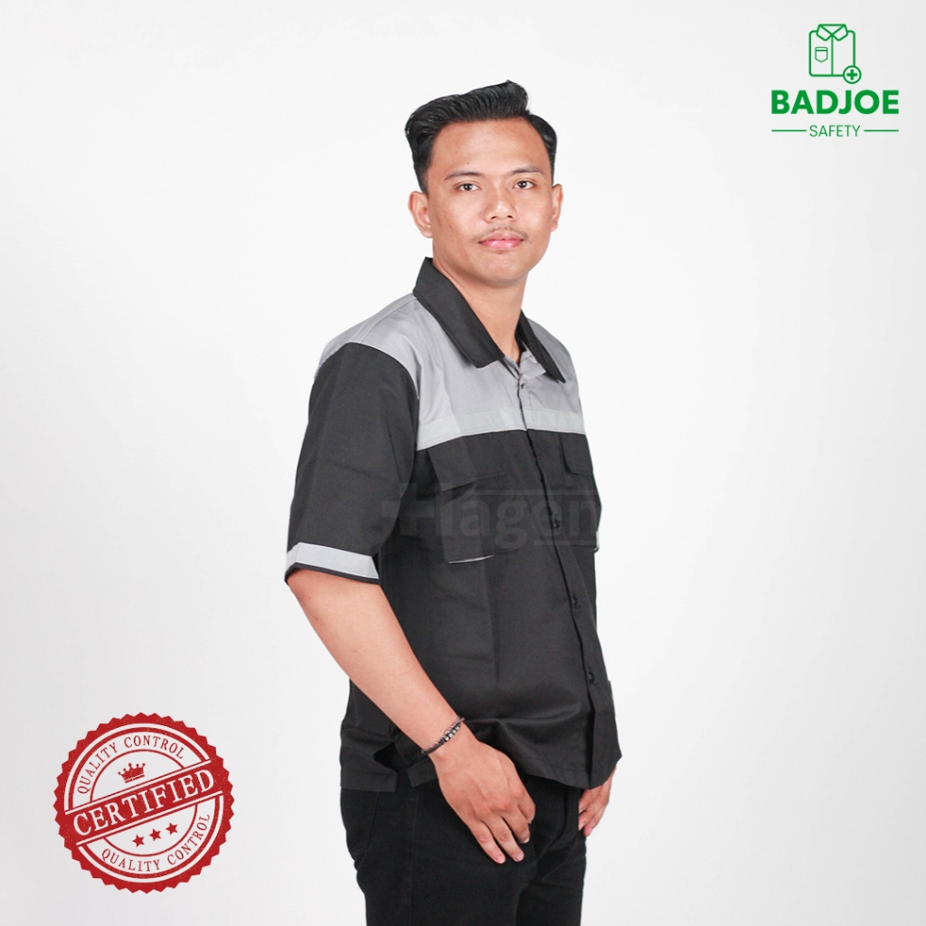 Wearpack Lengan Pendek / Baju Wearpack Safety Lengan Pendek Warna Hitam Kombinasi Abu