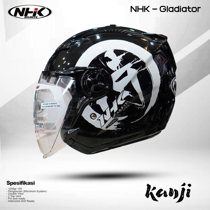 HELM NHK GLADIATOR MOTIF DOUBLE VISOR ORIGINAL SNI - KANJI BLACK WHITE, M