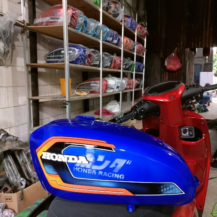 TANGKI CB125 CB100 TENGKI CB125SE CBGLATIK CB BLADUS CB TEYENG CB ORIGINAL - biru motif racing