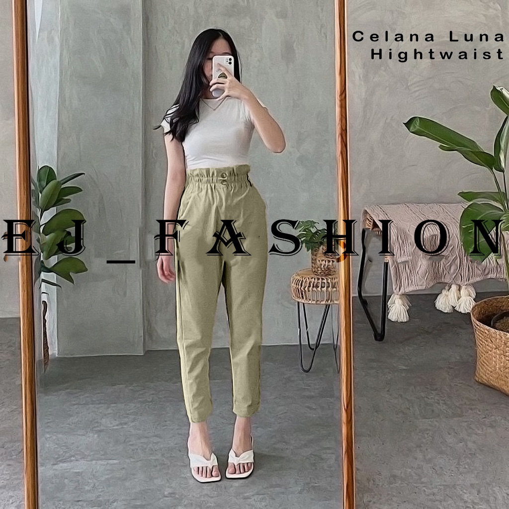 EJ Fashion Celana Wanita Kulot Luna Pensil Panjang Highwaist Kerut Susun Kancing 2 Terbaru 2024 Kekinian korean Style