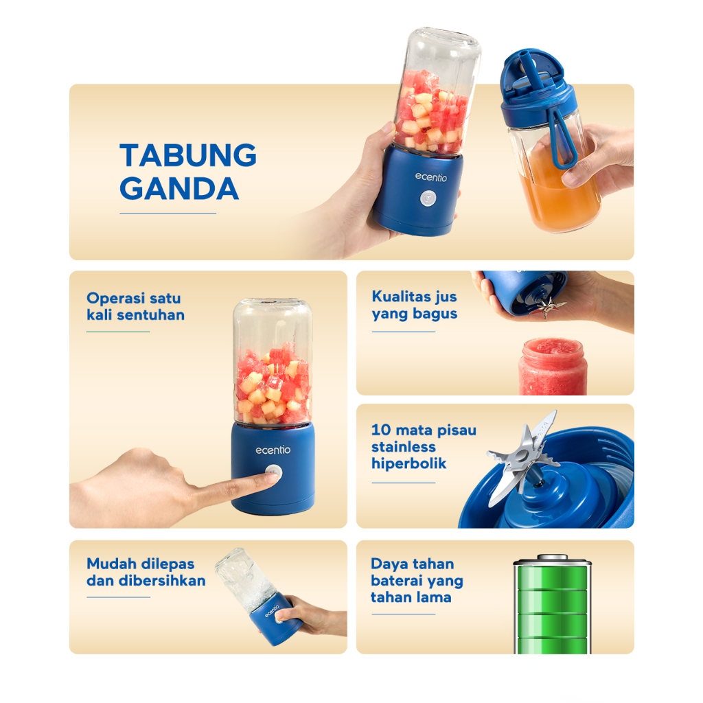 ET.Blender Juicer Portable 10/8/6 Mata Mini Juicer Portable Blender kaca gelas Chopper Kecil Bumbu Kapsul Jus Buah tan