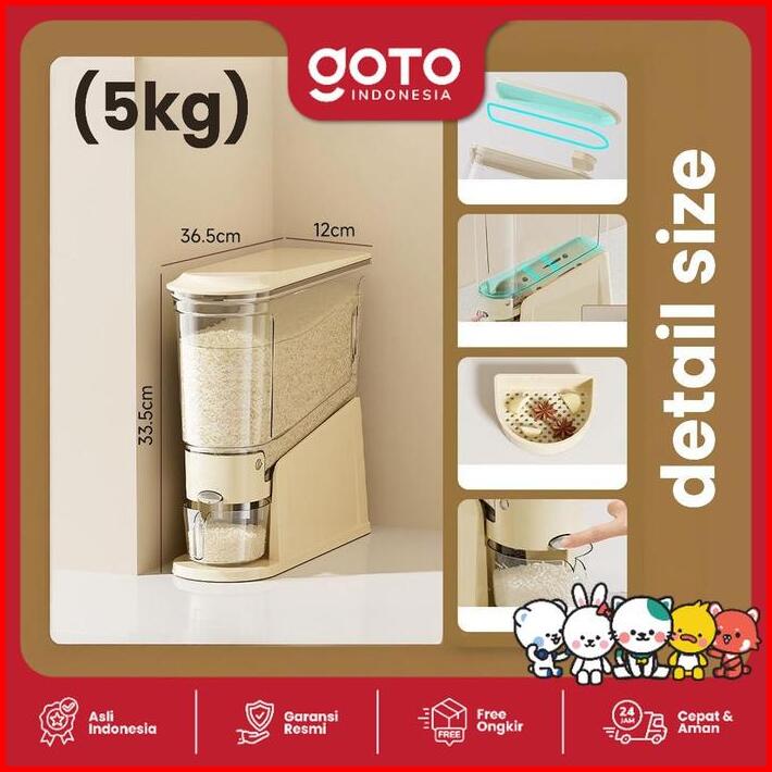 Goto Riselin Rice Dispenser Tempat Wadah Penyimpanan Beras 5kg 10kg