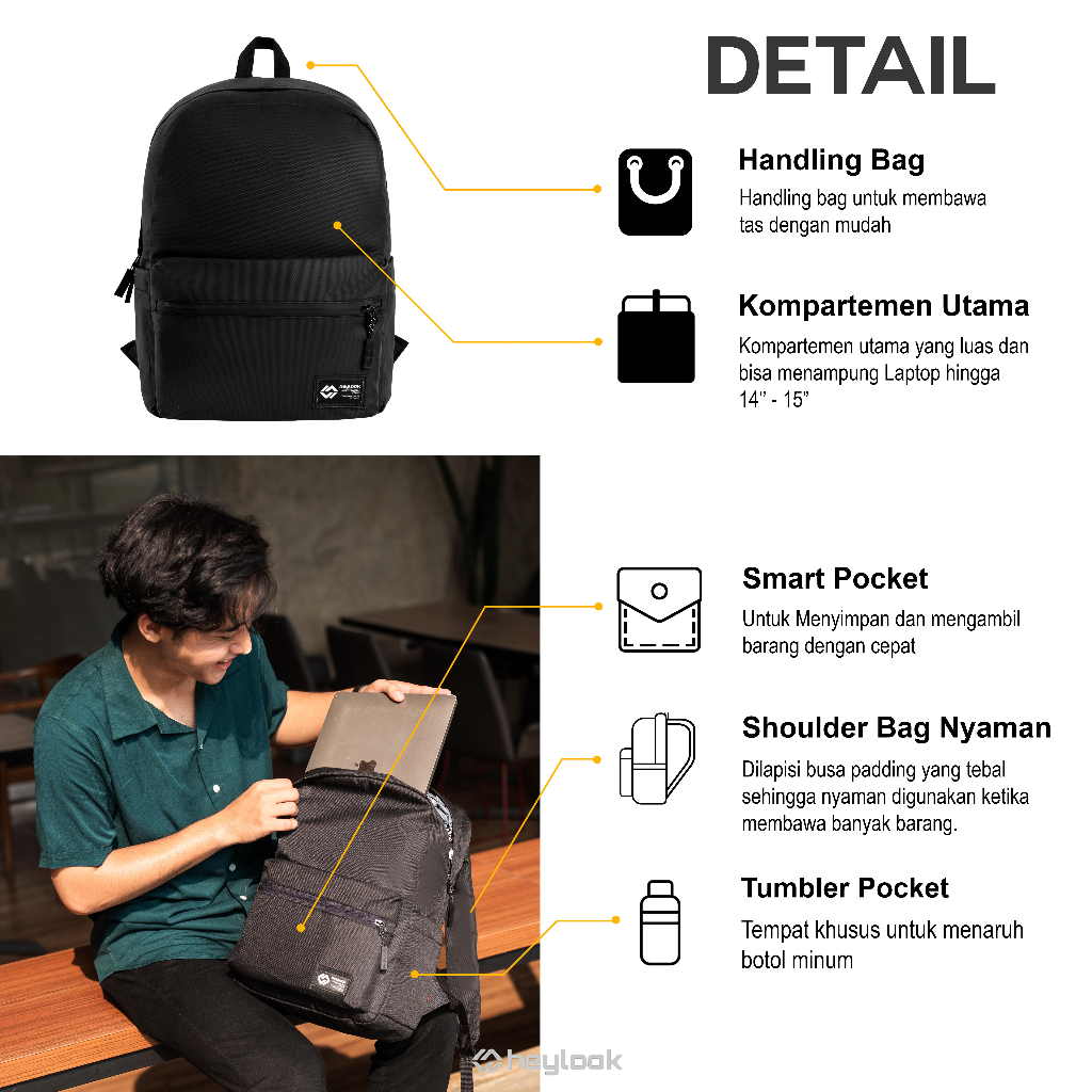 HEYLOOK - Tas Ransel Laptop DENZEL 3.0 Waterproof Backpack Pria Tas Leptop 14 - 15inch Anti Air Tas Sekolah Tas Kuliah