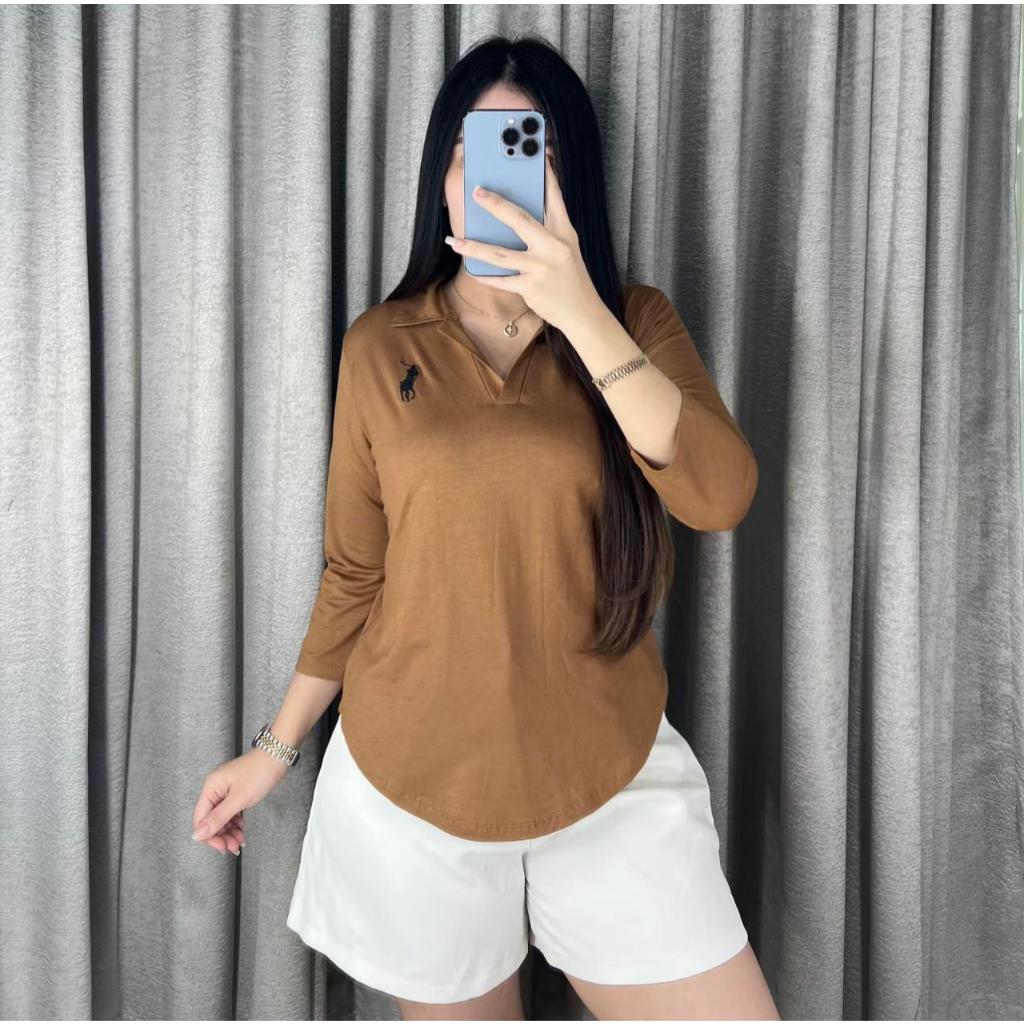 Olive Bordir Atasan Kerah V Lengan Panjang / Atasan Wanita Kekinian