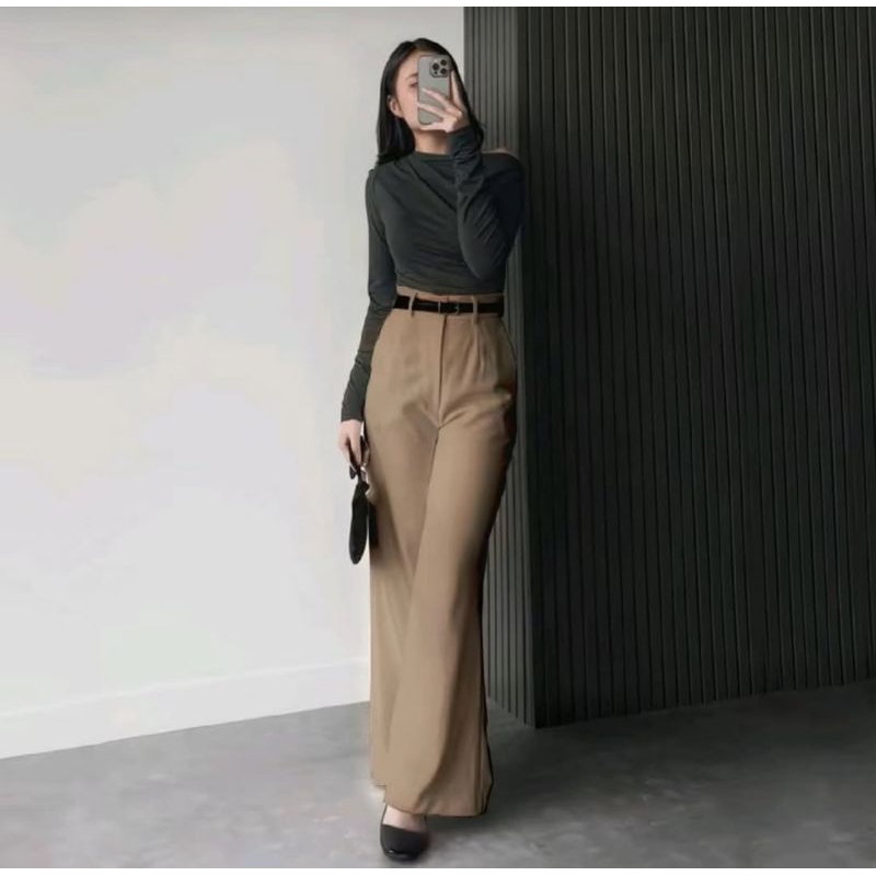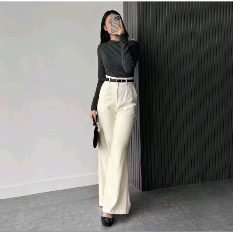 Etta Pants Celana Wanita Panjang Formal Kerja Kantor Kulot Cutbray Loose Pants Highwaist Anti Kusut Trousers Terbaru Kekinian Bahan Semi woll