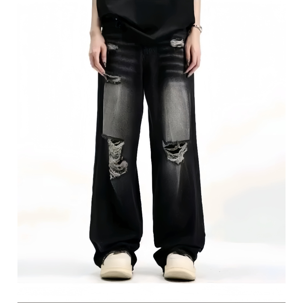 CELANA BAGGY JEANS SOBEK RIPPED UNISEX HIGHWAIST KULOT JEANS RIPPED LOOSE CELANA PANJANG JEANS DENIM KOREAN STYLE