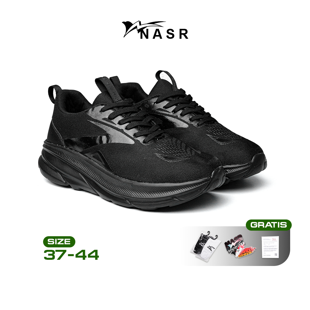 Nasr Vortex Run - Sepatu Olahraga Running Sporty Sneakers Casual Pria Wanita Triple Black