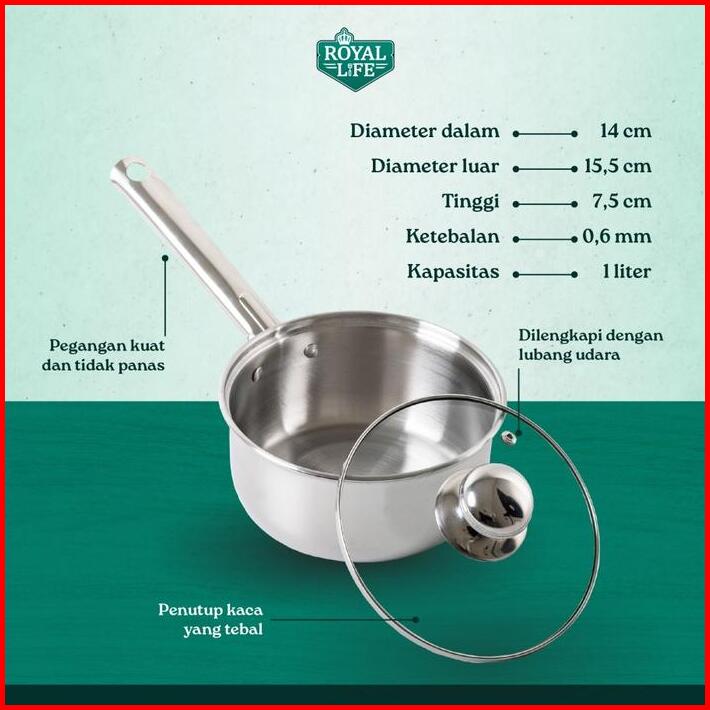 Royal Life Sauce Pan Panci Susu Stainless Steel Tutup 14 Cm 16 Cm 18 Cm Food Grade
