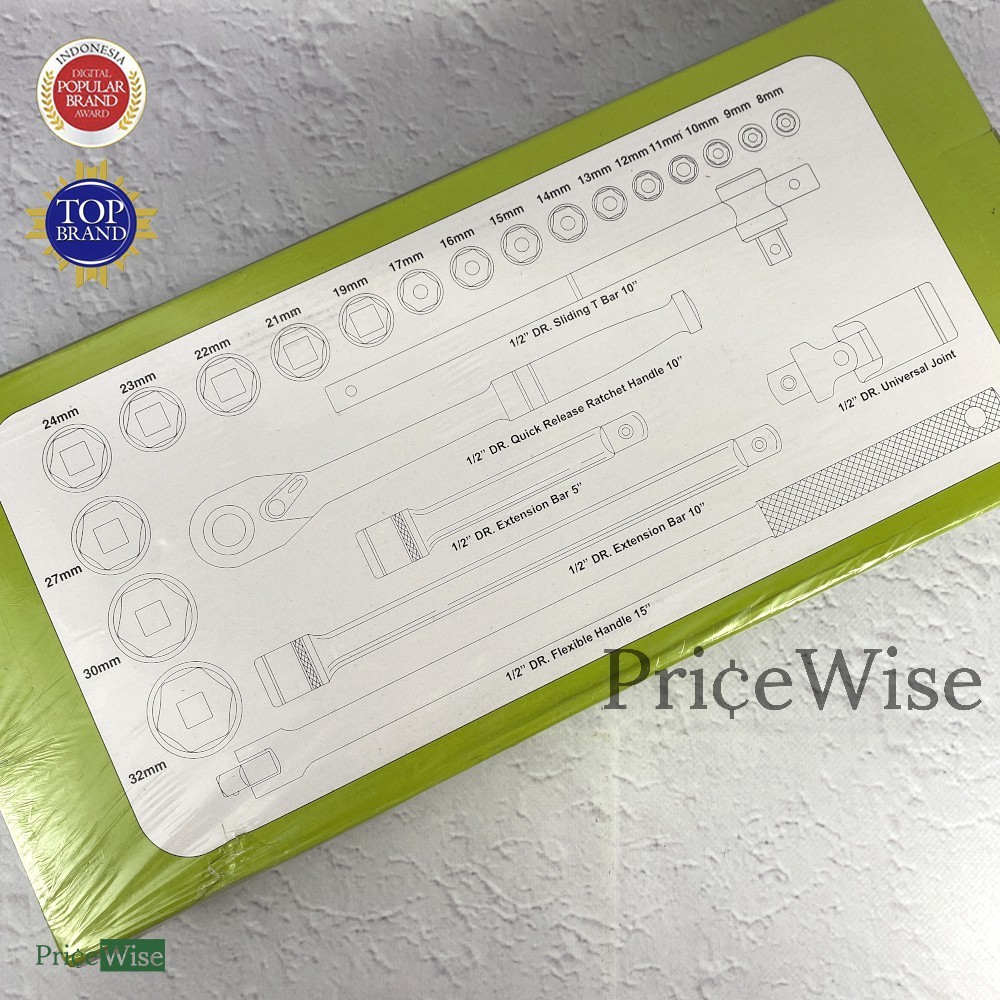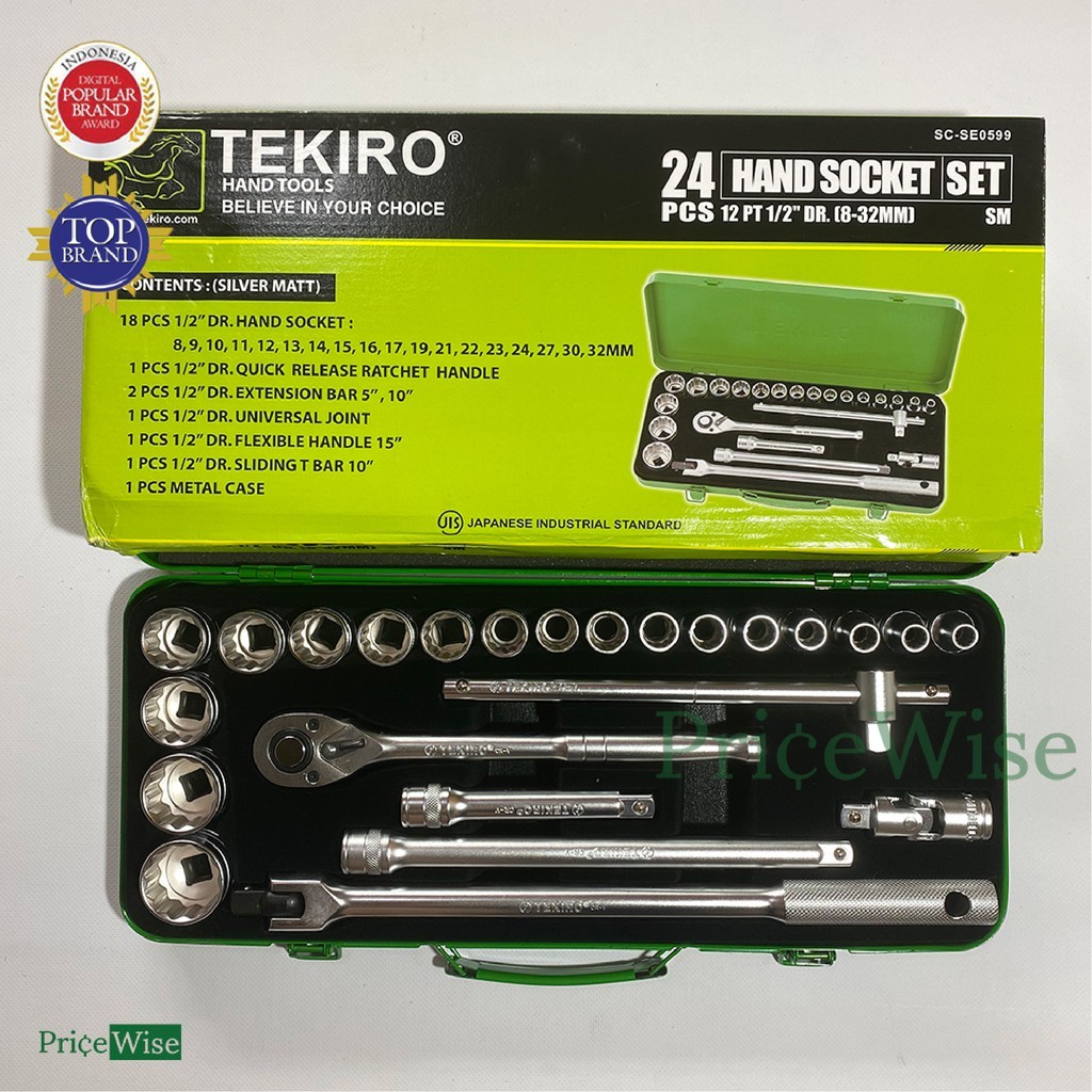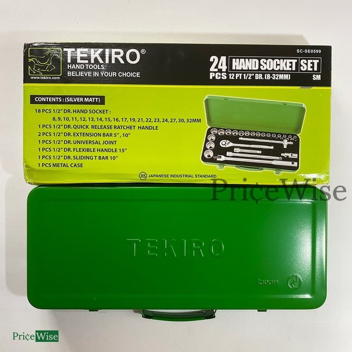 Kunci Sok Set 24 pcs 6 PT 12 PT 8-32 mm / Hand Socket / Kunci Sock Box Besi Tekiro